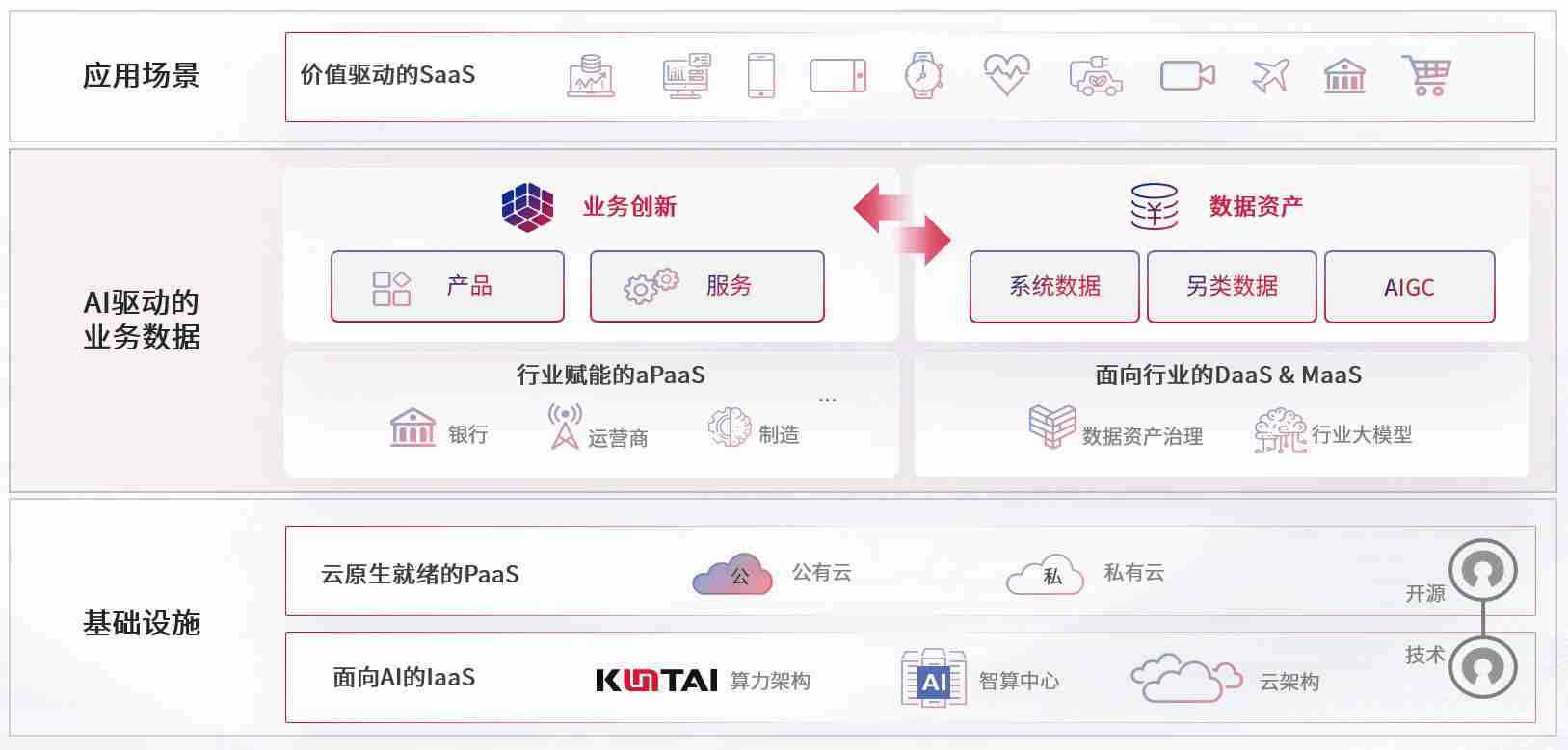数字时代,,,,围绕企业数字化转型的关键要素,,长征娱乐数码开创性的提出数云融合战略和技术体系框架,,着力在云原生、、、、数字原生、、AI原生和信创产业上架构产品和服务能力,,为处在不同数字化转型阶段的快消零售、、、、汽车、、、金融、、、医疗、、、政企、、教育、、运营商等行业客户提供泛在的敏捷IT能力和融合的数据驱动能力,,,构建跨界融合创新的数字业务场景和新业务模式,,,助力企业级客户建立面向未来的核心能力和竞争优势,,,,全面推动社会的数字化、、、、智能化转型升级。。。。